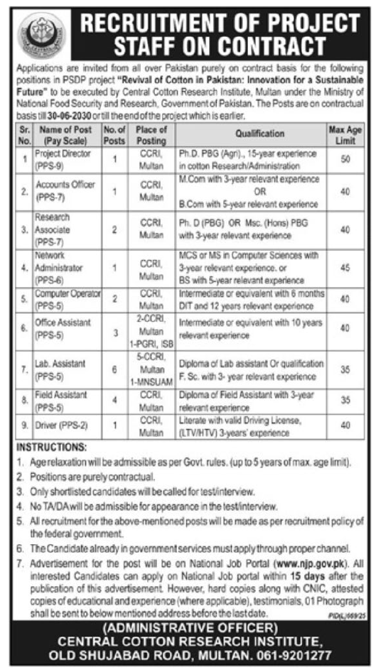 Director CCRI Multan Chief Executive Officer, Federal Secretary Federal Minister